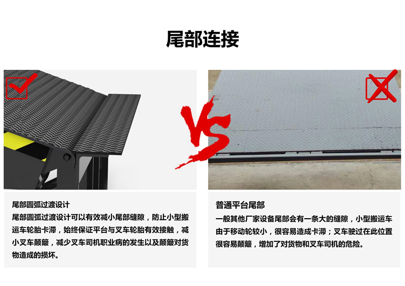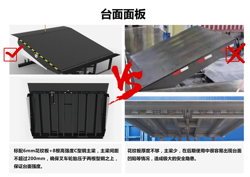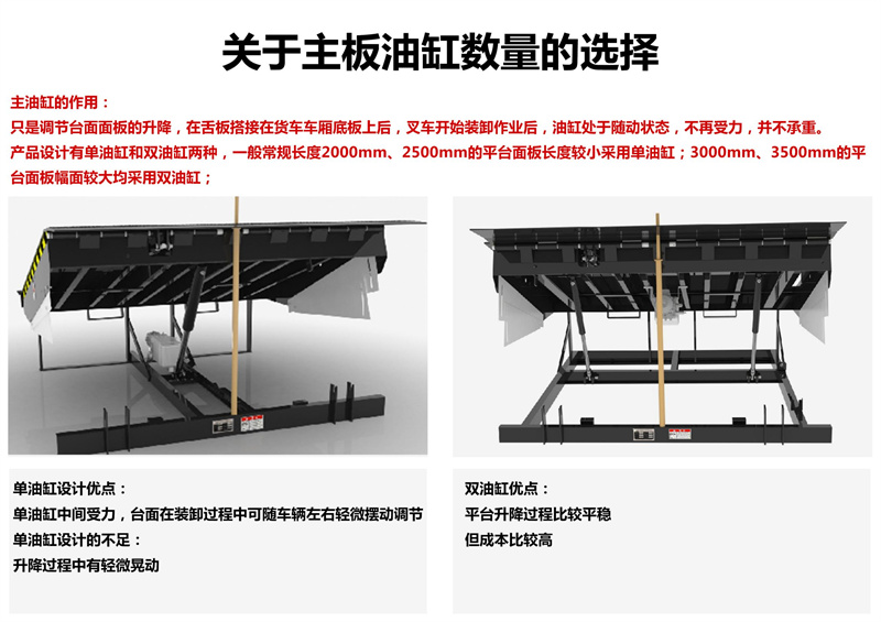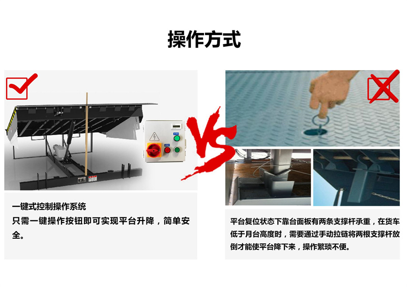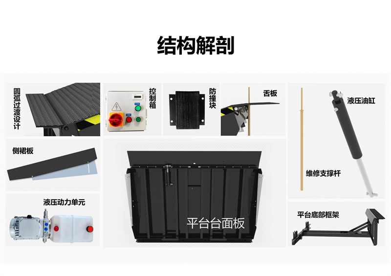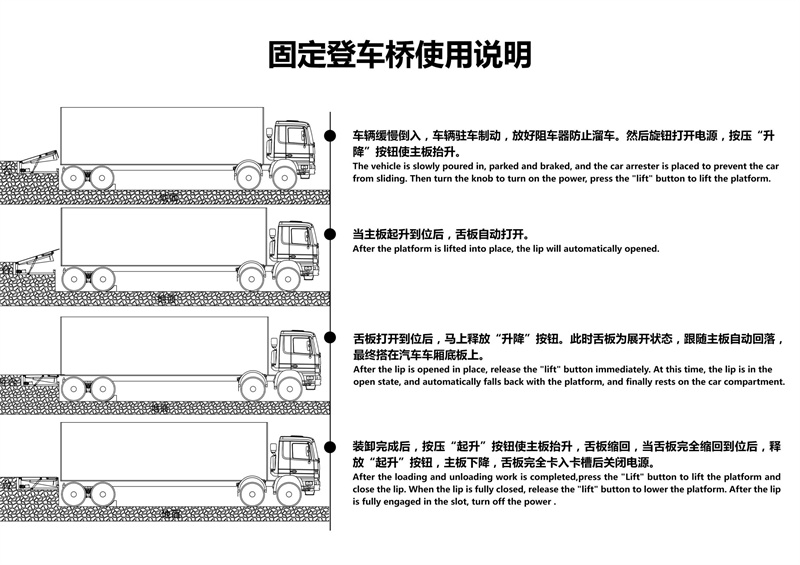 固定式登車橋電動液壓高度可任意調(diào)節(jié) ,提高裝卸效率的液壓固定式登車橋,采用全液壓驅(qū)動,操作方便運行可靠。唇板與平臺采用整長軸連接,強度高、可靠性好。用進口整體模塊式液壓站,密封性好,使用壽命長。