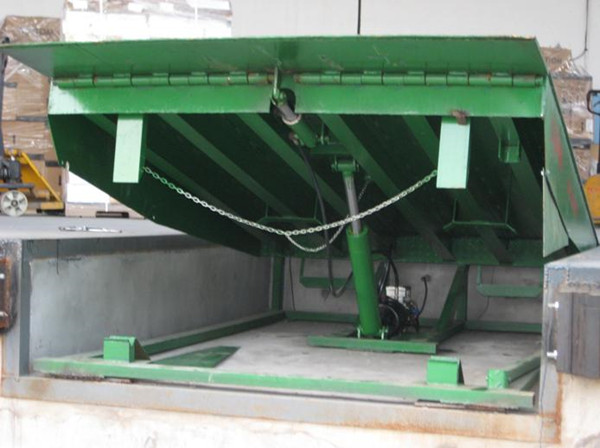 通過動力系統,大油缸升起整個斜板,至頂位時,小油缸開始工作,順暢伸出活頁搭板, 高度調節板全部采用濟南濟鋼優質高度花紋鋼板及型材緊密焊接,壽命長久。