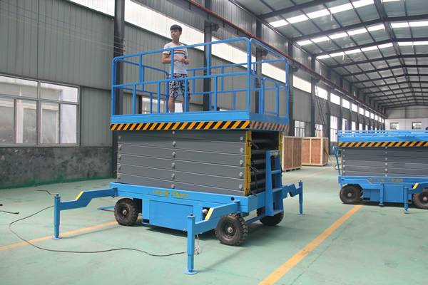 移動式升降機是用途廣泛的高空作業專用設備。移動式升降平臺的剪叉機械結構,使升降臺起升有較高的穩定性,寬大的作業平臺和較高的承載能力,使高空作業范圍更大、并適合多人同時作業。